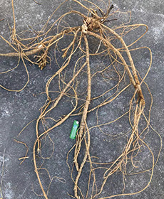 劣質苗結薯特點 收獲期主根為木質薯,其他分根薯細小,整棵重量少